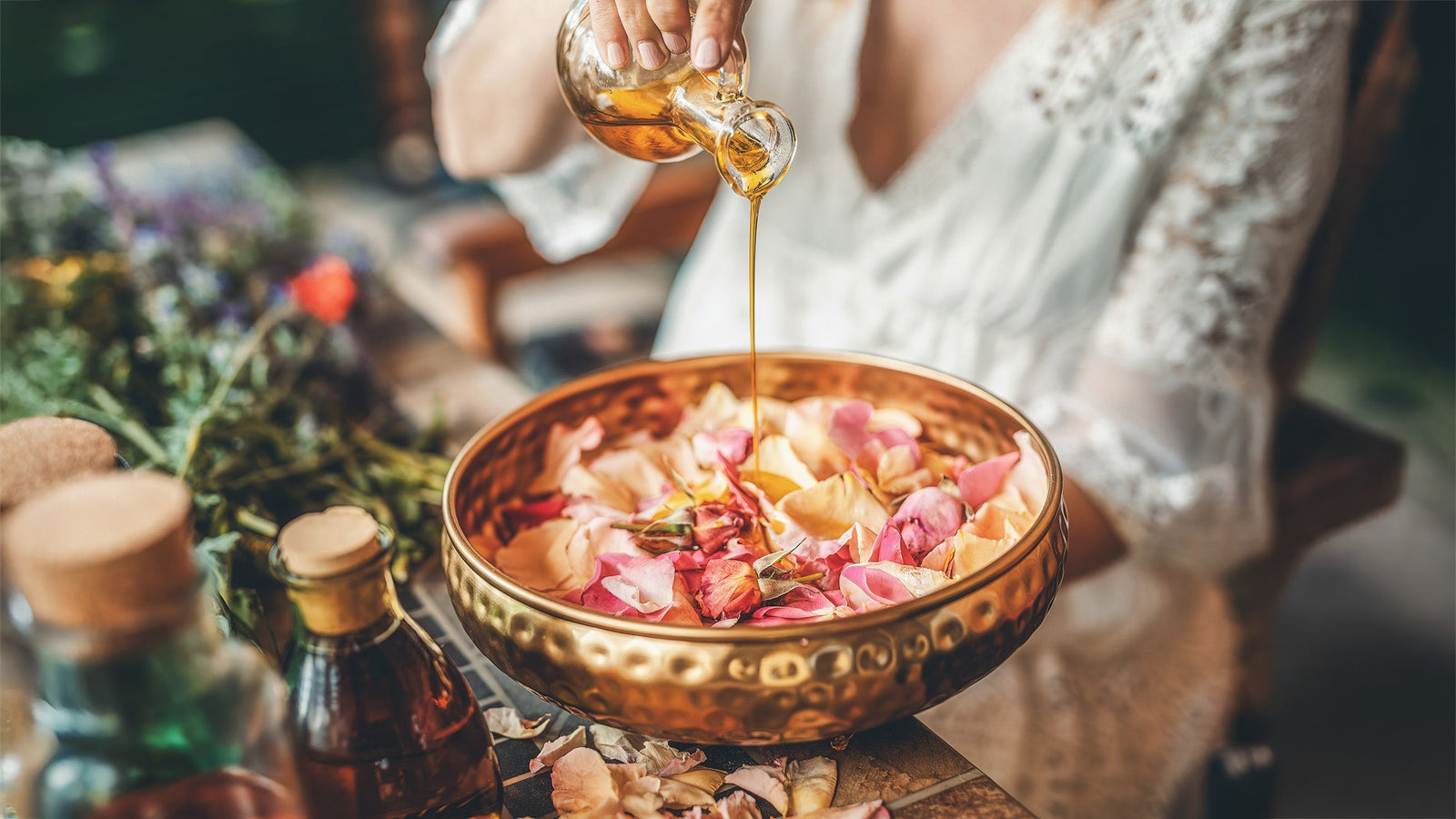 - 2. Add 10 ml of the Rose Jojoba Oil (containing 2 drops of Rose Otto Essential Oil)
