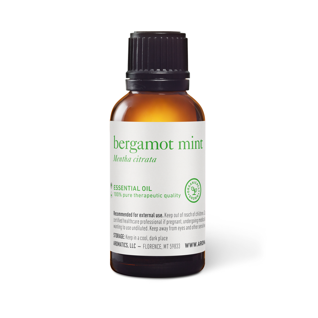 Bergamot mint is a member of the mint family. The essential oil steam distilled from the leaves is fresh and minty, with hints of citrus that add a layer of warmth. Keep this oil around during a stressful day to feel centered and optimistic. Bergamot mint’s talent for relaxation is also useful for bedtime blends, and for sore, tight muscles. Our bergamot mint essential oil is organically crafted in the Indian and English countrysides. Its natural composition closely resembles that of lavender, and the two oils blend well together.